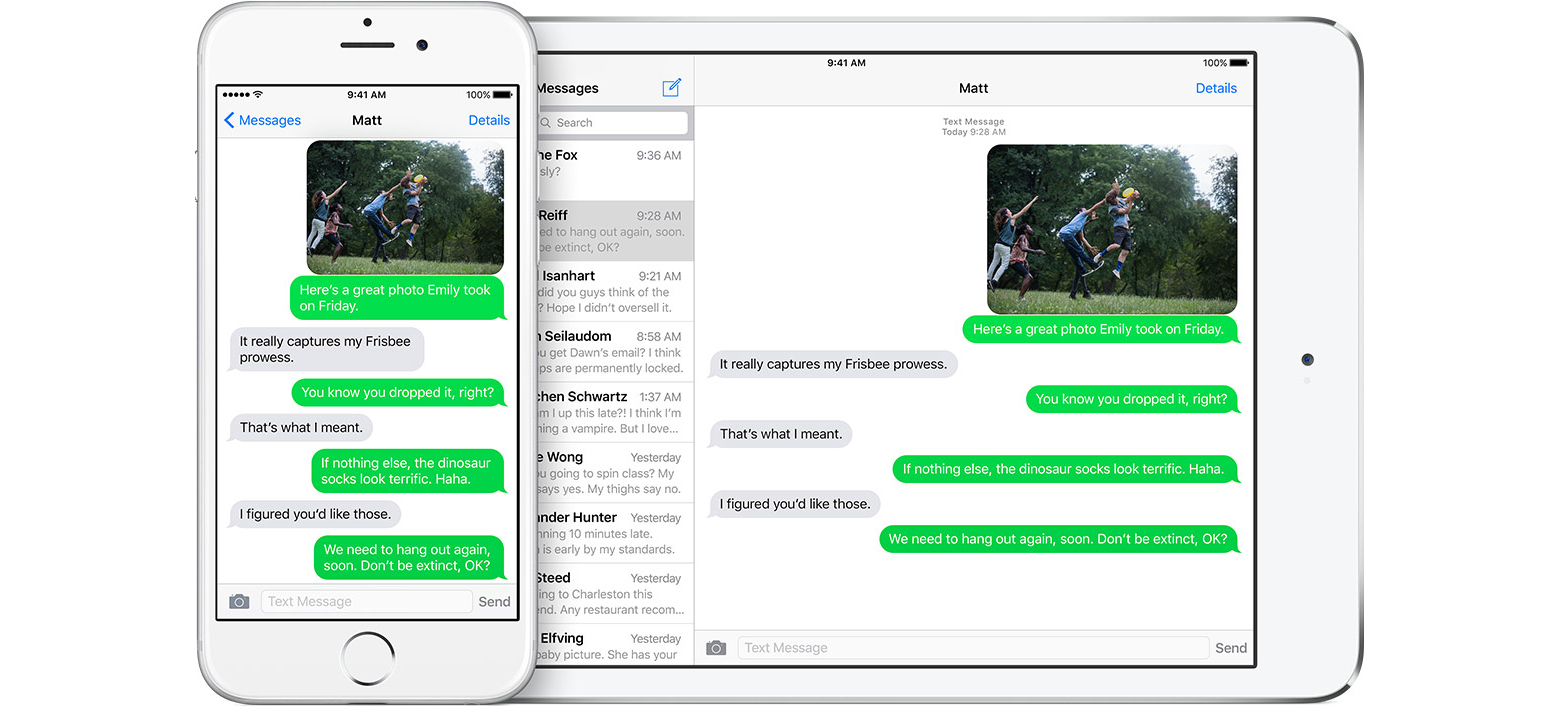 Mesajele text sunt prezentate in mod cronologic intr-un mailbox cu format similar mail-ului, ce plaseaza toate fisierele text (mesajele) intr-un singur loc, impreuna cu reply-urile. Mesajele text sunt afisate in forma de balonase de text (speech bubbles) in mod similar cu iChat, sub numele fiecarui recipient in parte.
